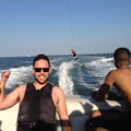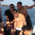 - Justin Bieber wakeboarding with Scooter Braun.