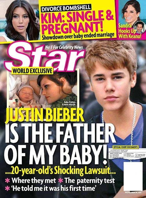 On October 31, 2011, a 20-year-old named Mariah Yeater accused and sued 17-year-old Justin Bieber that her 3-month-old baby was the singer's son. The demand was to "confirm it scientifically" according to Star Magazine site, the site that had the exclusive a few days later in November.